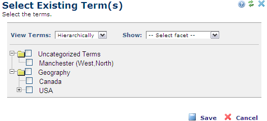 View Terms: Displays options hierarchically or alphabetically.